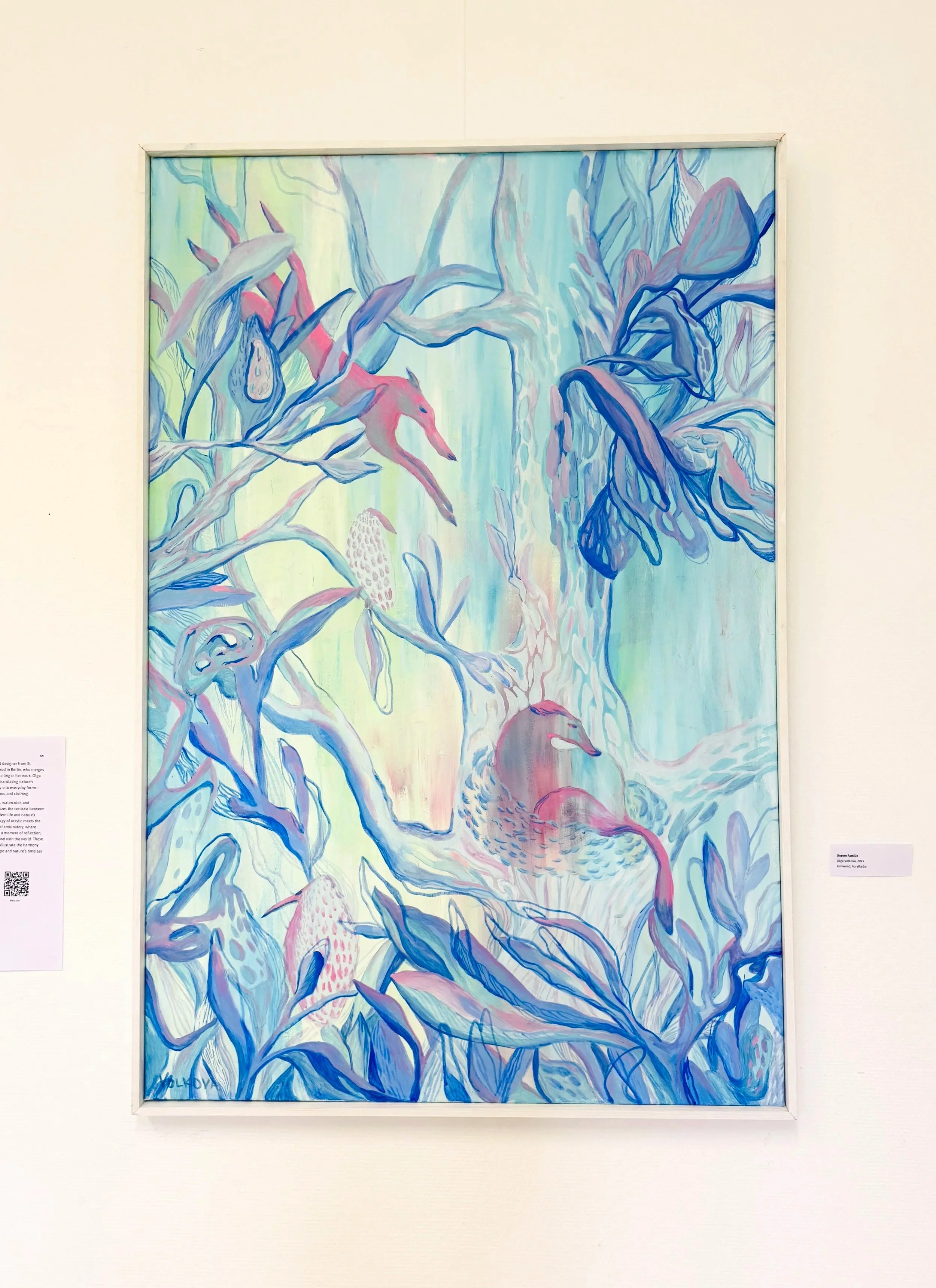 Acrylic, aquarelle, embroidery on canvas, Berlin, 2025.