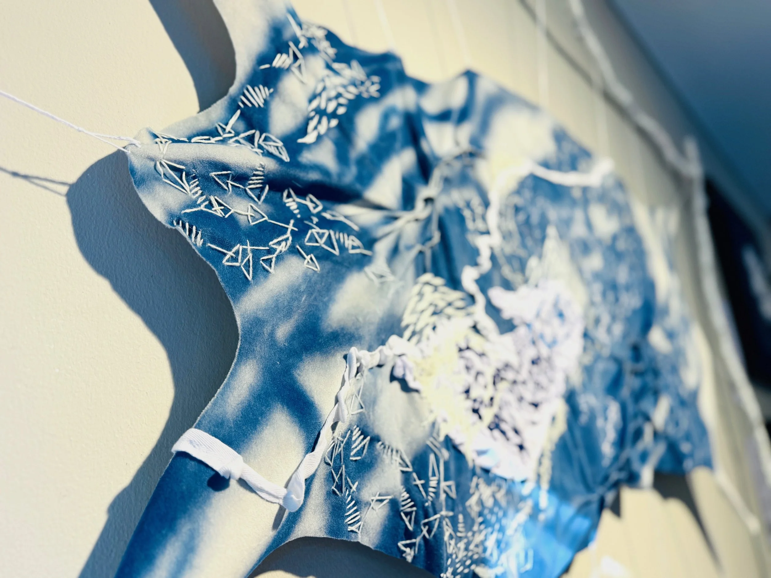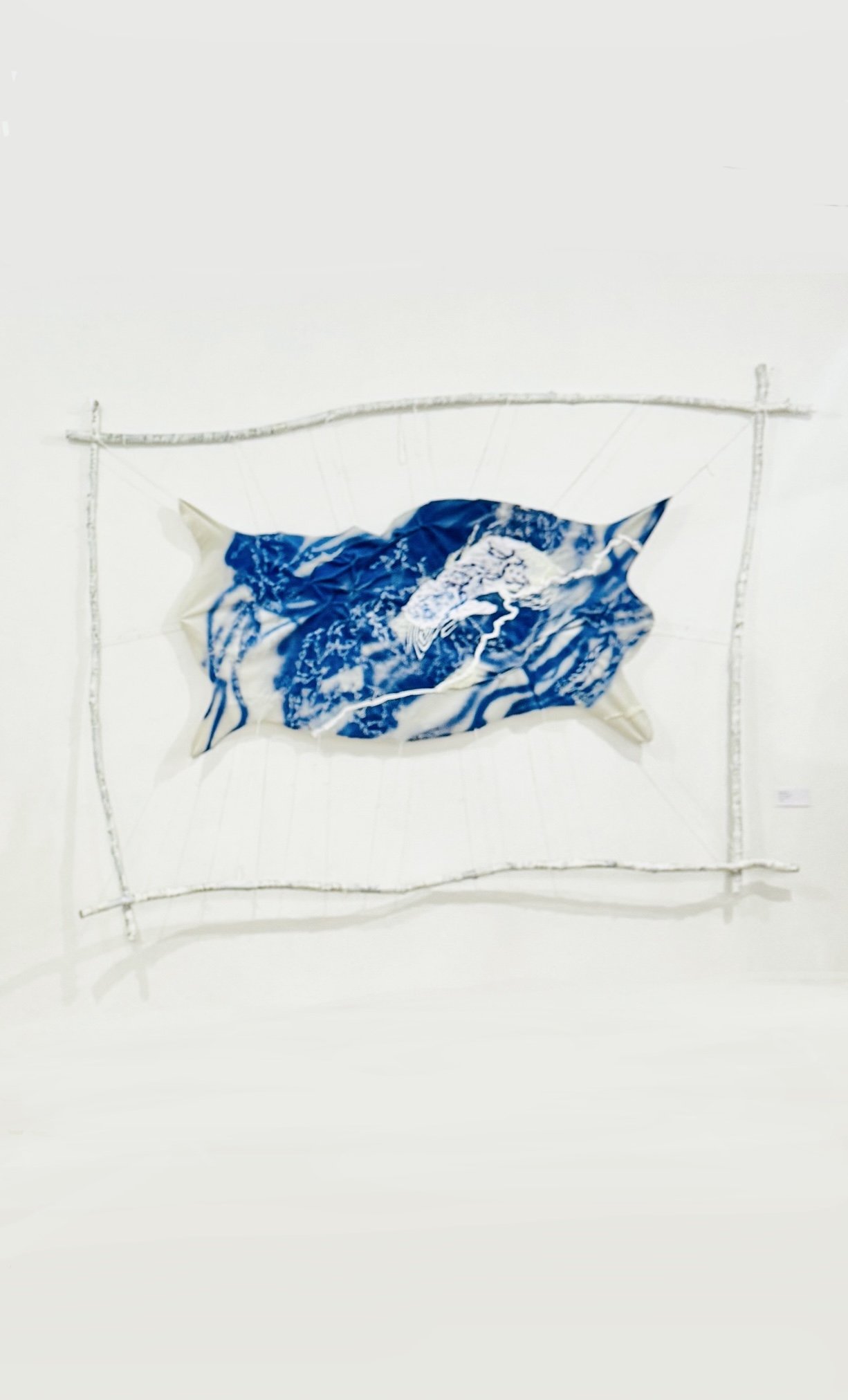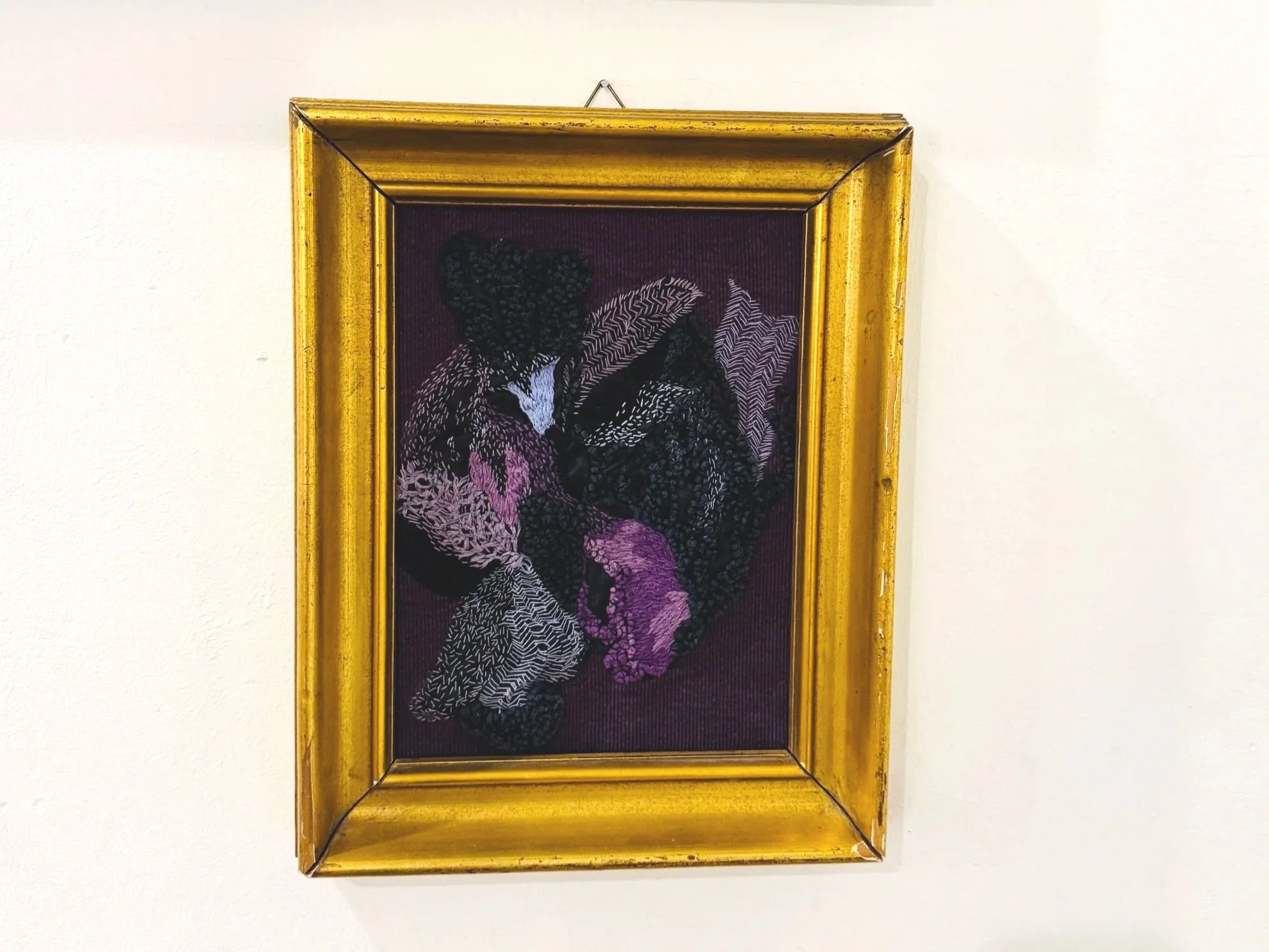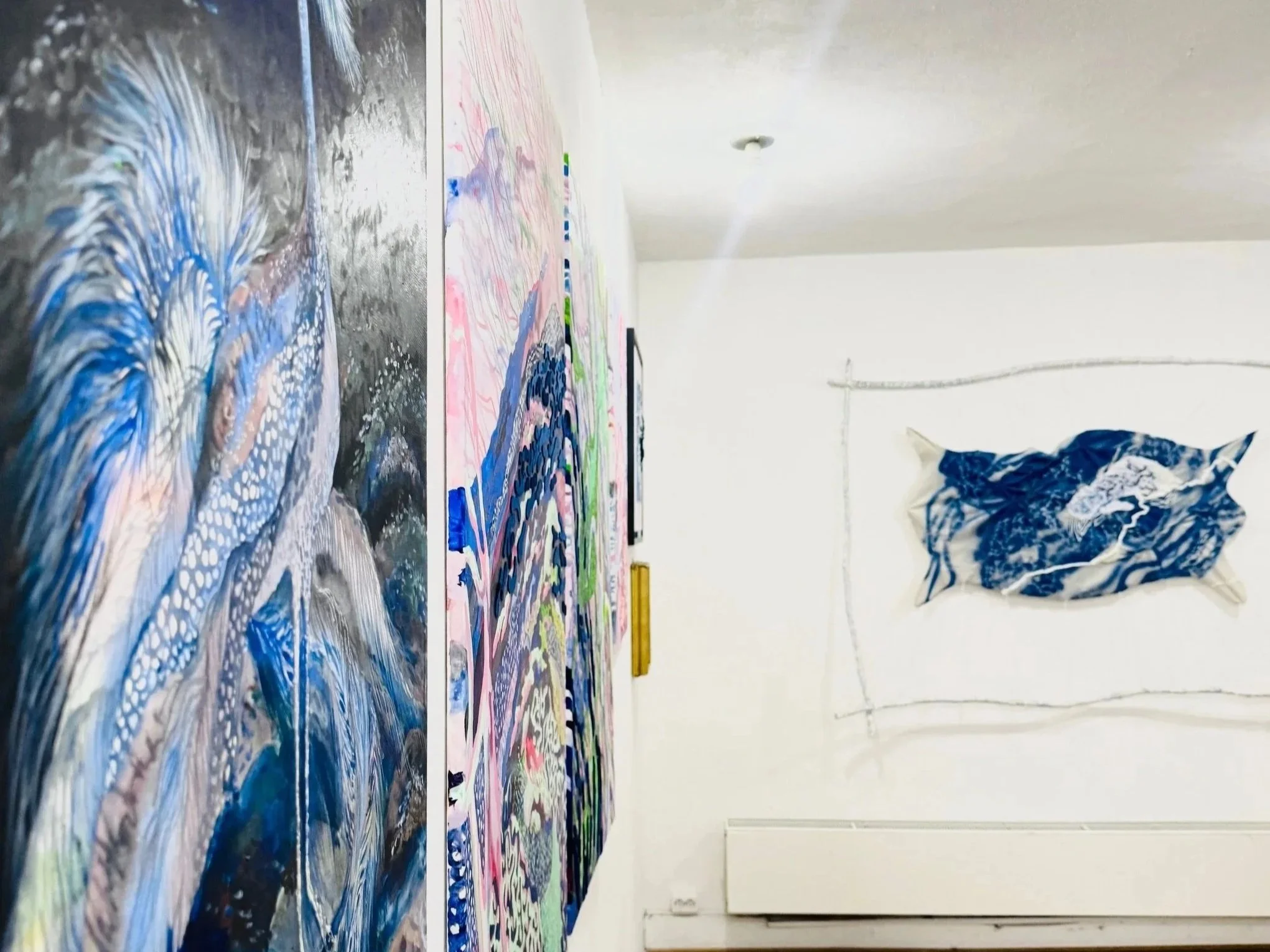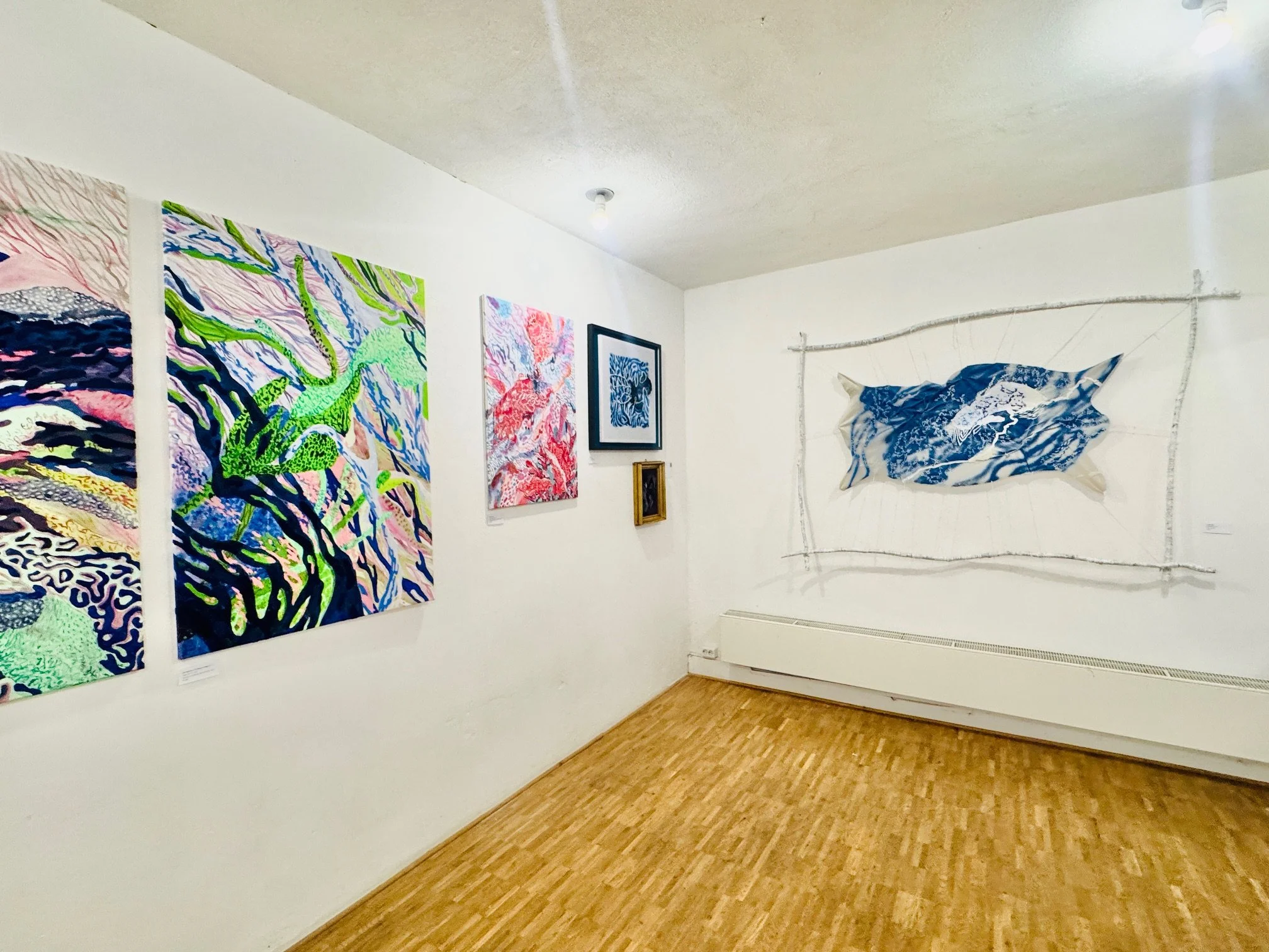 At the exhibition, Olga presented a series of works titled Fragile Wild, an exploration of the fragility and strength of nature. The combination of acrylic, watercolor, and embroidery reflects the contrast between the rapid pace of the modern world and the unhurried rhythm of life in nature. The dynamism of acrylic contrasts with the slowness of embroidery.