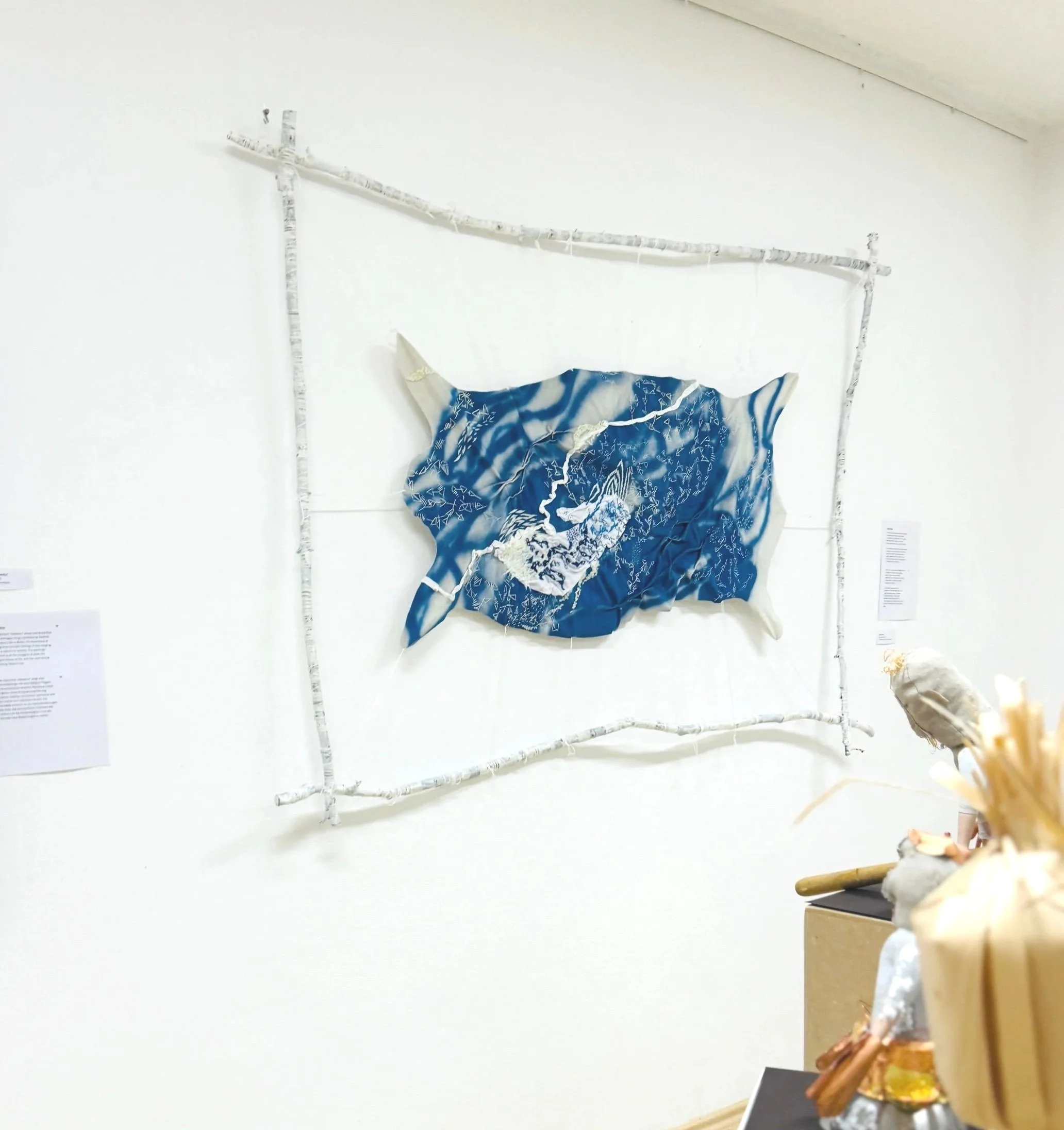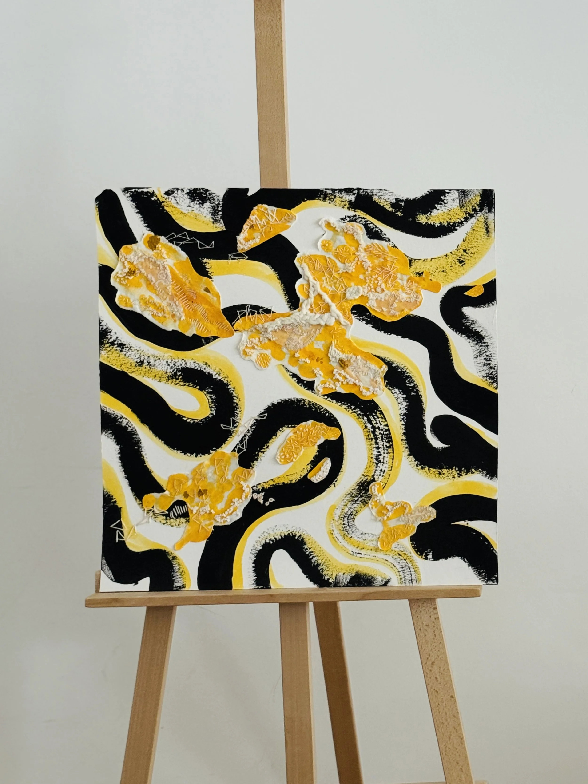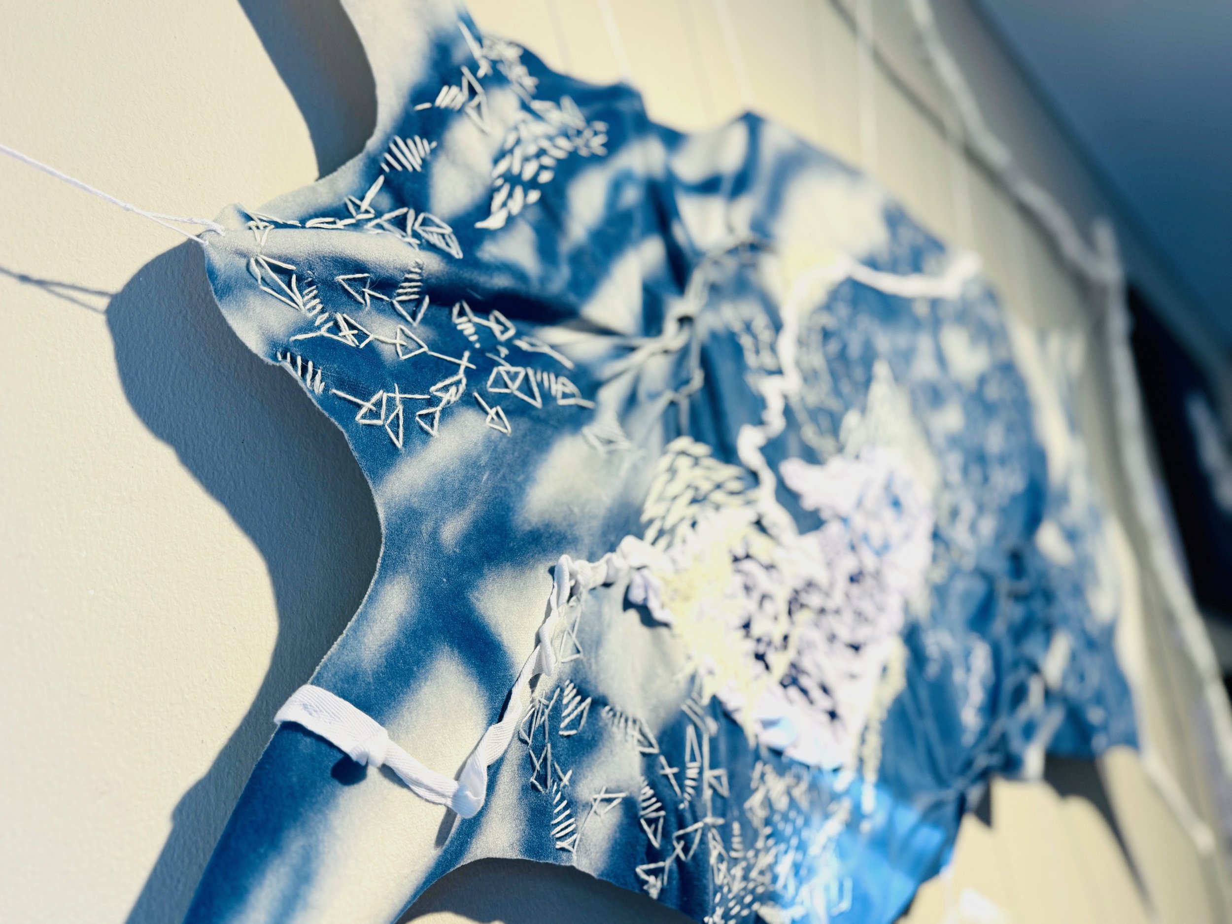 The handmade embroidery techniques in my work aim to illustrate a slower pace of life. This project combines artificial materials with acrylic painting and handcrafted embroidery.